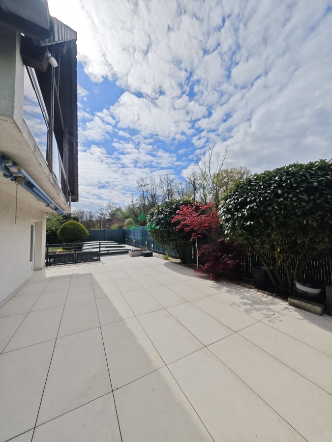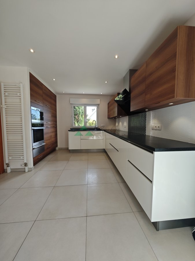 Außergewöhnliche Villa mit 221 m2 vor den Toren von Basel in grüner Umgebung und mit atemberaubender Aussicht. Eingebettet in eine seltene und besonders begehrte grüne Umgebung erstreckt sich dieses charaktervolle Anwesen über eine Grundfläche von ca. 250 m2, davon 221 m2 Wohnfläche, auf einem 8,36 Ar großen Grundstück und bietet ein privilegiertes Wohnumfeld vor den Toren der Schweizer Grenze. Das Anwesen liegt auf den Anhöhen von Buschwiller am Rande des bebaubaren Gebiets und besticht durch seine erhöhte Lage mit einem bemerkenswerten, unverbauten Blick auf die umliegende Landschaft, die Natur und Ruhe vereint. Schon beim Betreten begeistern die großzügigen Räume und die allgegenwärtige Helligkeit sofort. Der Hauptwohnbereich erstreckt sich über fast 80 m2 und bietet ein harmonisch um eine moderne, voll ausgestattete Küche mit Kochinsel angeordnetes Wohn- und Esszimmer. Ein angrenzender Vorratsraum vervollständigt diesen Bereich. Das Ensemble wird durch einen Kamin abgerundet, der Wärme und Eleganz ausstrahlt. In der Verlängerung lädt eine kürzlich renovierte, herrliche Terrasse dazu ein, den Außenbereich in vollen Zügen zu genießen. Sie ist mit einer Markise ausgestattet, ideal, um die schönen Tage zu genießen und sich gleichzeitig vor der Sonne zu schütze