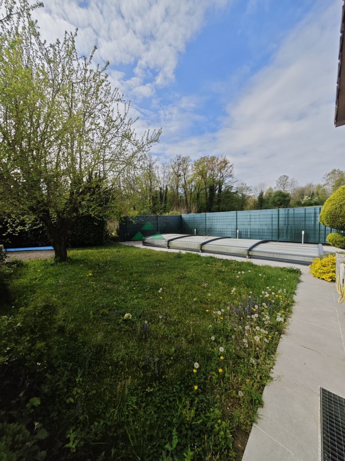 Villa d'exception de 221 m2 aux portes de Bâle cadre verdoya. Nichée dans un environnement verdoyant rare et particulièrement recherché, cette propriété de caractère développe environ 250 m2 au sol dont 221 m2 habitables sur un terrain de 8,36 ares, offrant un cadre de vie privilégié aux portes des frontières suisses. Située sur les hauteurs de Buschwiller, en limite de zone constructible, elle bénéficie d'une position dominante avec une vue dégagée remarquable sur les paysages environnants, alliant nature et tranquillité.Dès l'entrée, les volumes généreux et la luminosité omniprésente séduisent instantanément. L'espace de vie principal développe près de 80 m2 ouverts offrant un séjour et une salle à manger harmonieusement agencés autour d'une cuisine moderne entièrement équipée avec îlot central. Un cellier attenant vient compléter cet espace. L'ensemble est sublimé par une cheminée qui apporte chaleur et élégance. Dans le prolongement, une superbe terrasse récemment rénovée invite à profiter pleinement des extérieurs. Elle est équipée d'un store, idéal pour profiter des beaux jours tout en se protégeant du soleil, et s'ouvre sur un espace piscine couverte, parfaitement intégré dans un écrin de verdure, à l'abri des regards.