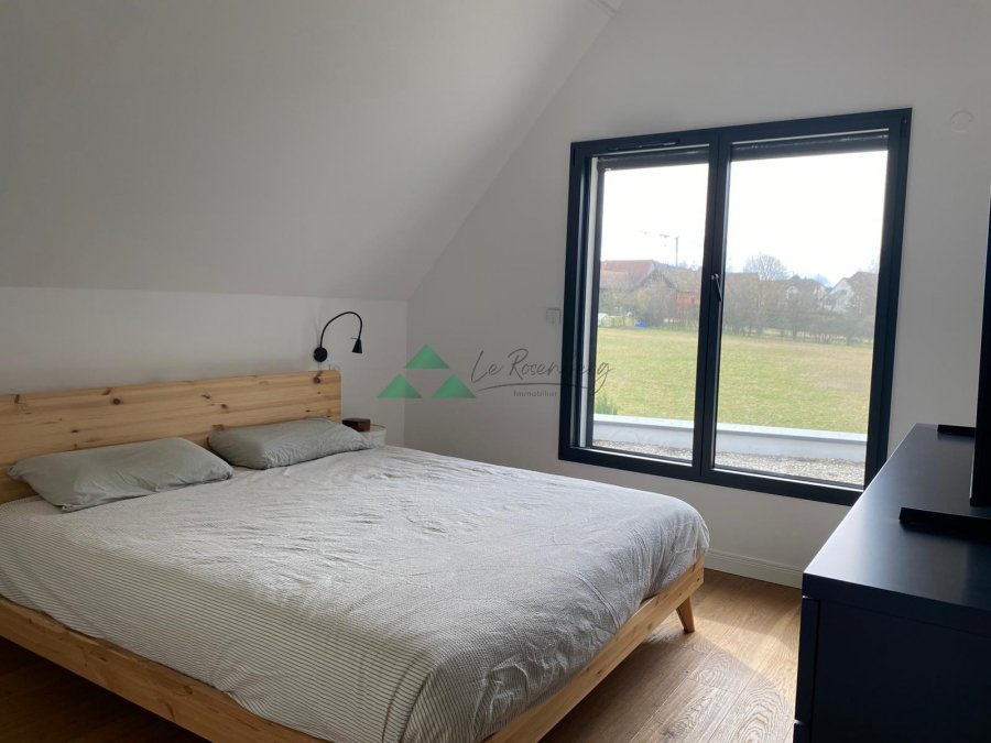 Maison à Leymen. Située à Leymen, en limite de zone constructible, cette maison contemporaine achevée en 2024 bénéficie d'une vue dégagée et d'un environnement particulièrement calme et préservé.Elle offre 135 m2 habitables sur un terrain total de 722 m2 (incluant un chemin en indivision), avec une belle exposition sud-ouest.